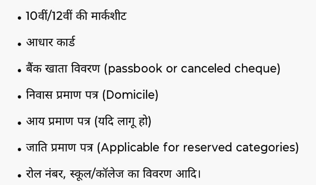 2. दूसरी राज्य/केन्द्रीय छात्रवृत्ति (Class 10 & 12 पास छात्रों के लिए)