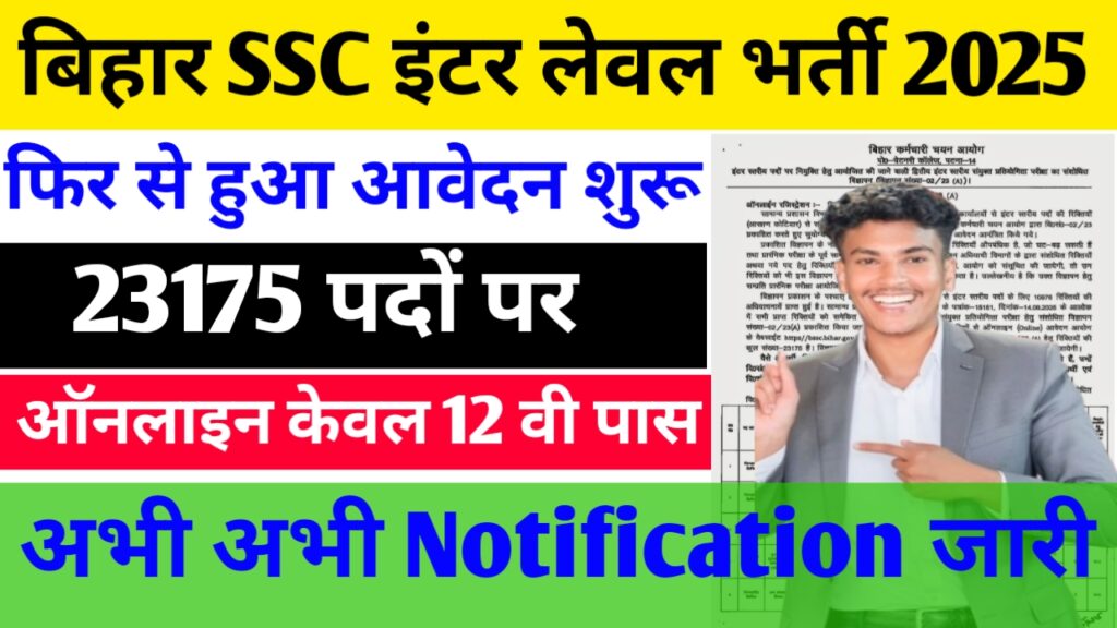 अगर आप भी बिहार सरकार में काम करने की इच्छा रखते हैं, तो आपके पास एक अद्भुत अवसर है। Bihar Staff Selection Commission (BSSC) ने 2025 में मध्यस्तरीय पदों के लिए एक महत्वपूर्ण नोटिफिकेशन जारी किया है। इस भर्ती में 23,175 पदों पर भर्ती की जाएगी।