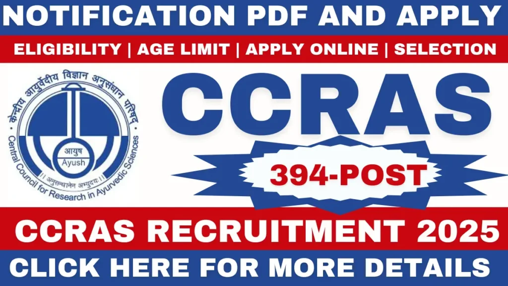 CCRAS Group A, B, C भर्ती 2025 –में कुल पदों की संख्या 394 पद कौन कौन सी पद होने वाली हैं ओ जान लेते हैं