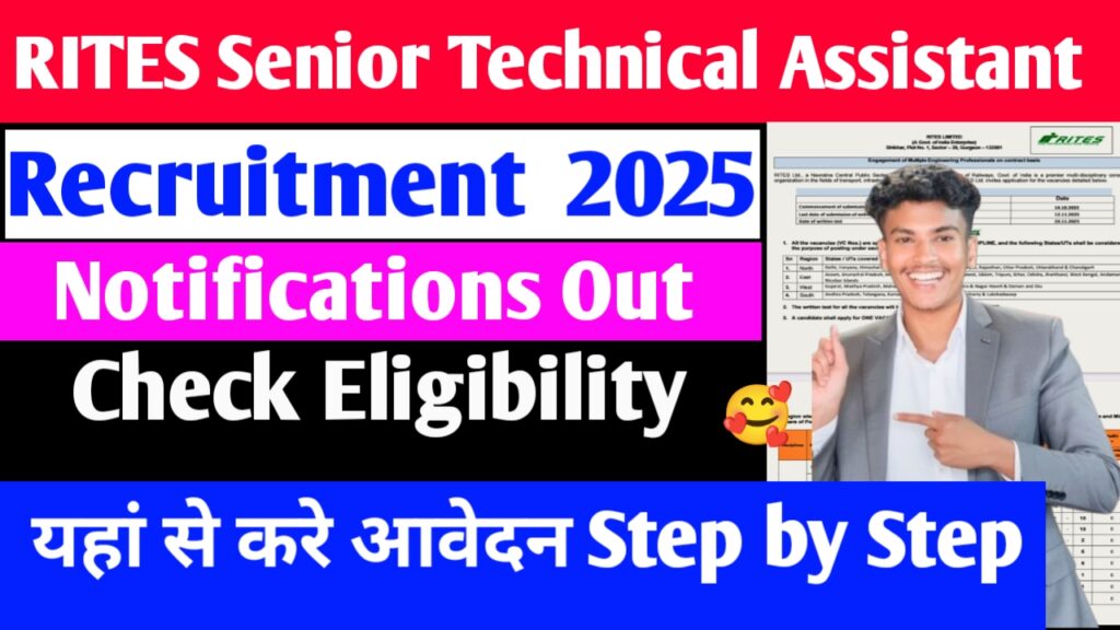 हमने इस लेख में योग्यता, वेतनमान, चयन प्रक्रिया और ऑनलाइन आवेदन प्रक्रिया के बारे में आपको पूरी जानकारी दी है, RITES Senior Technical Assistant Recruitment 2025।
